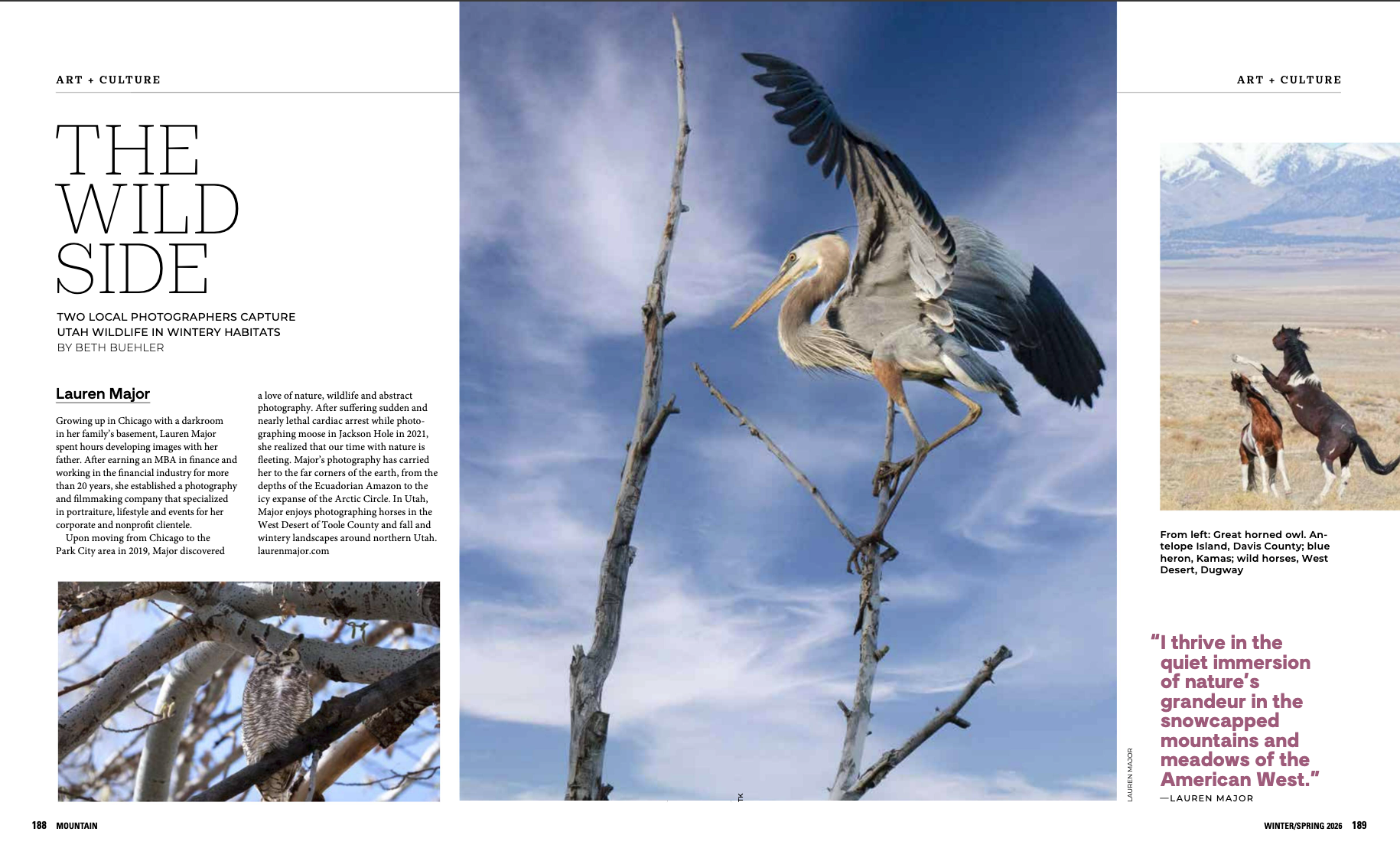 We’re proud to announce that Lauren Major Photography was recently featured in Mountain Magazine, highlighting Lauren’s winter wildlife photography.